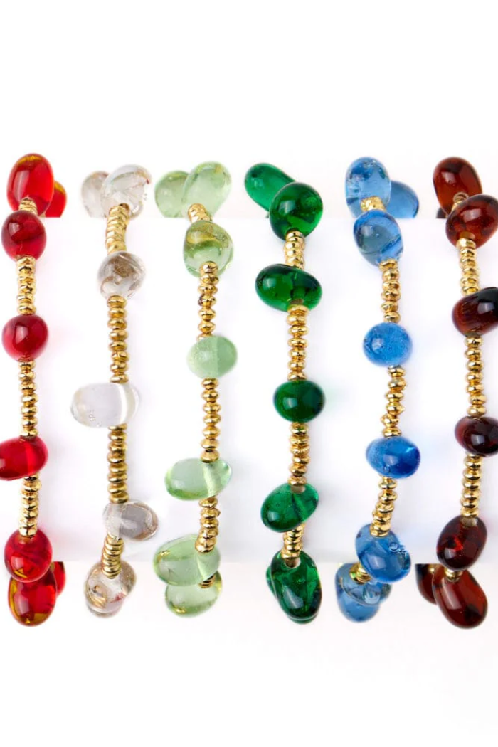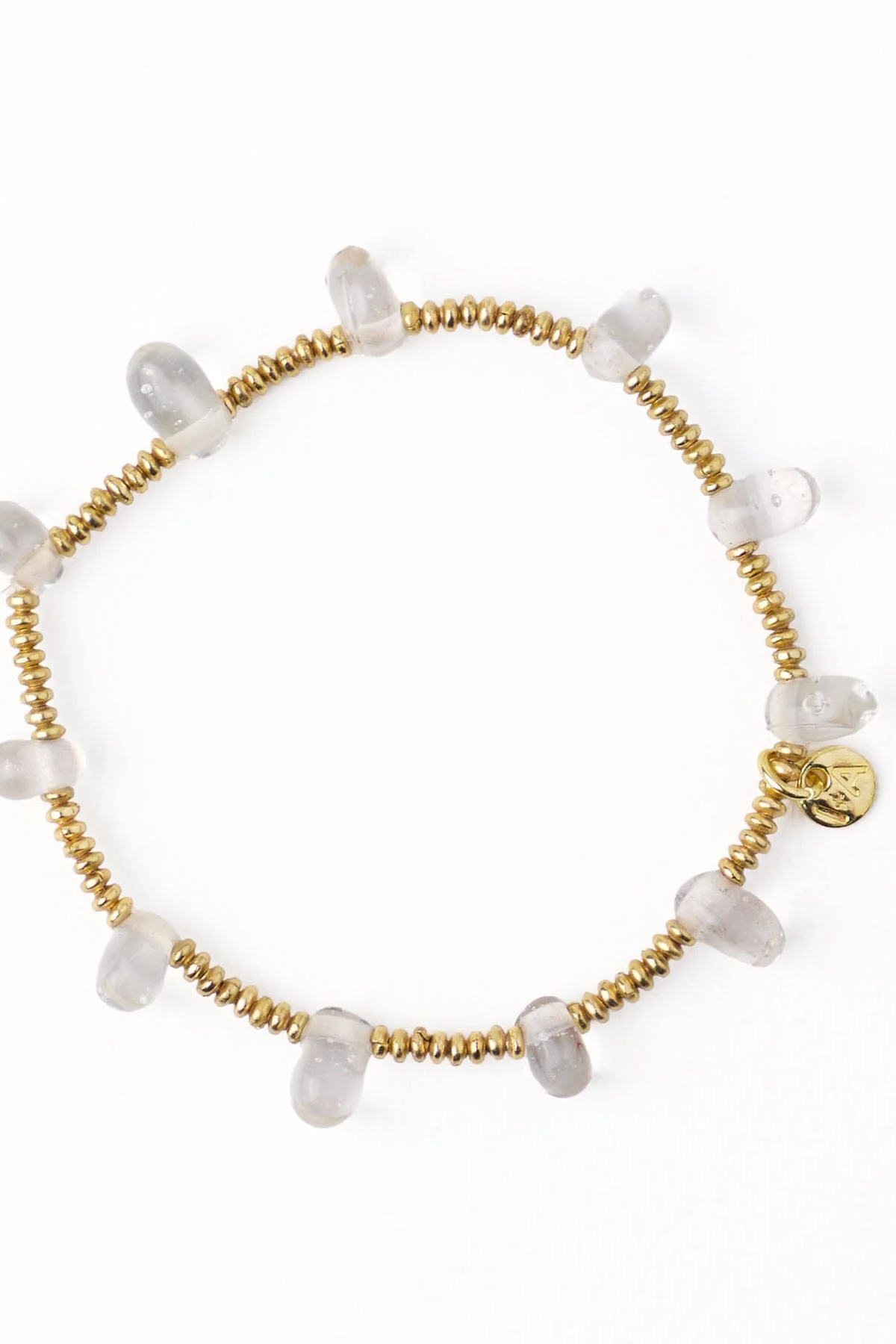 Hope Brass Stretch Bracelet With Glass Beads Clear