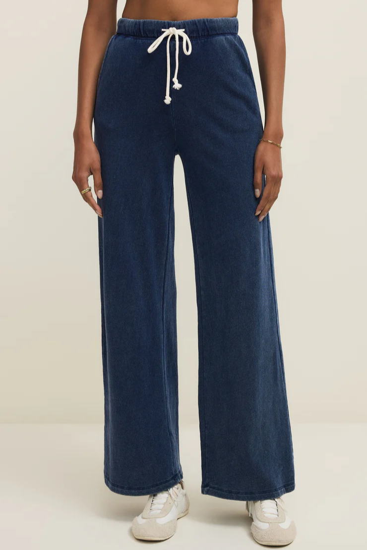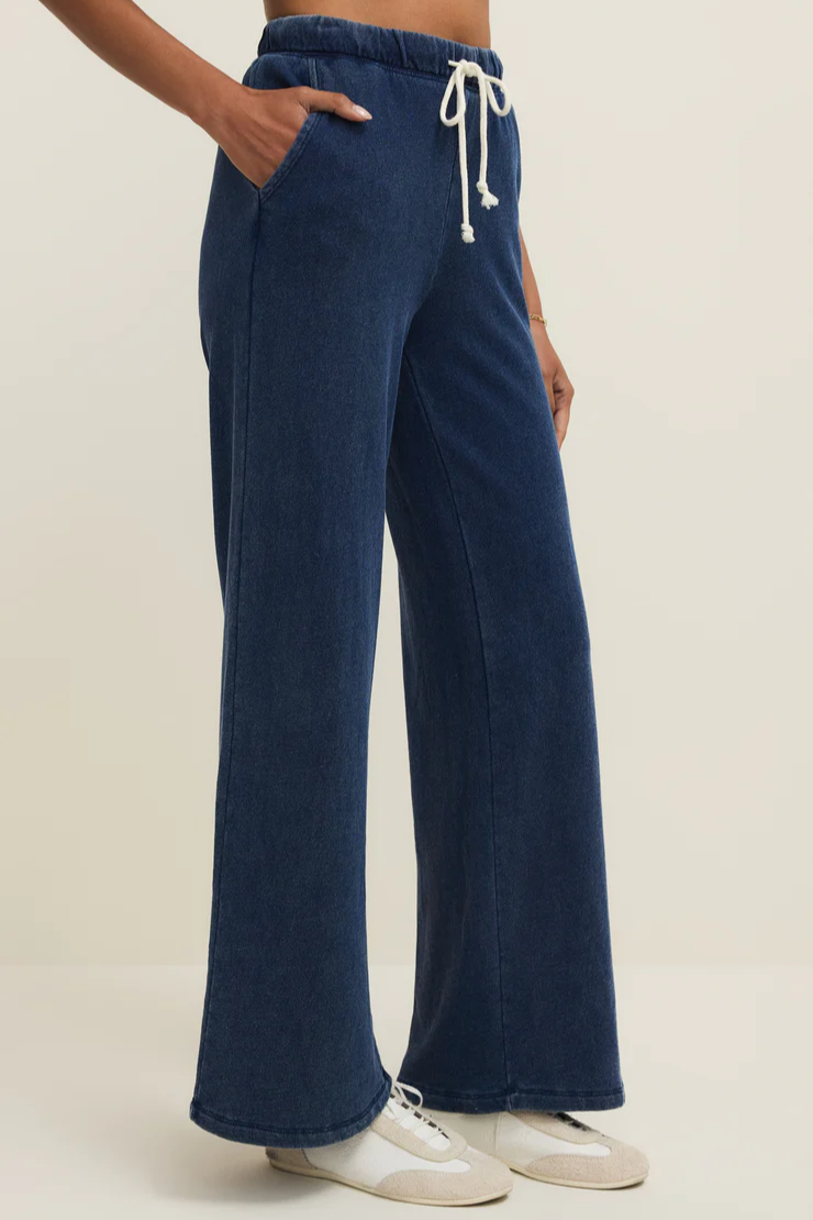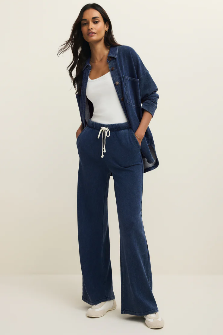 Say hello to your new go-to full-length pant, featuring side seam pockets and a fully functional drawcord waistband for that perfect fit. Made from lightweight knit denim, these pants combine style and comfort effortlessly for any occasion.