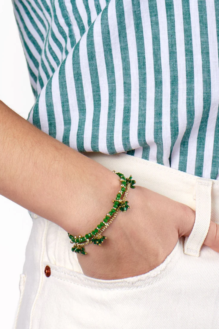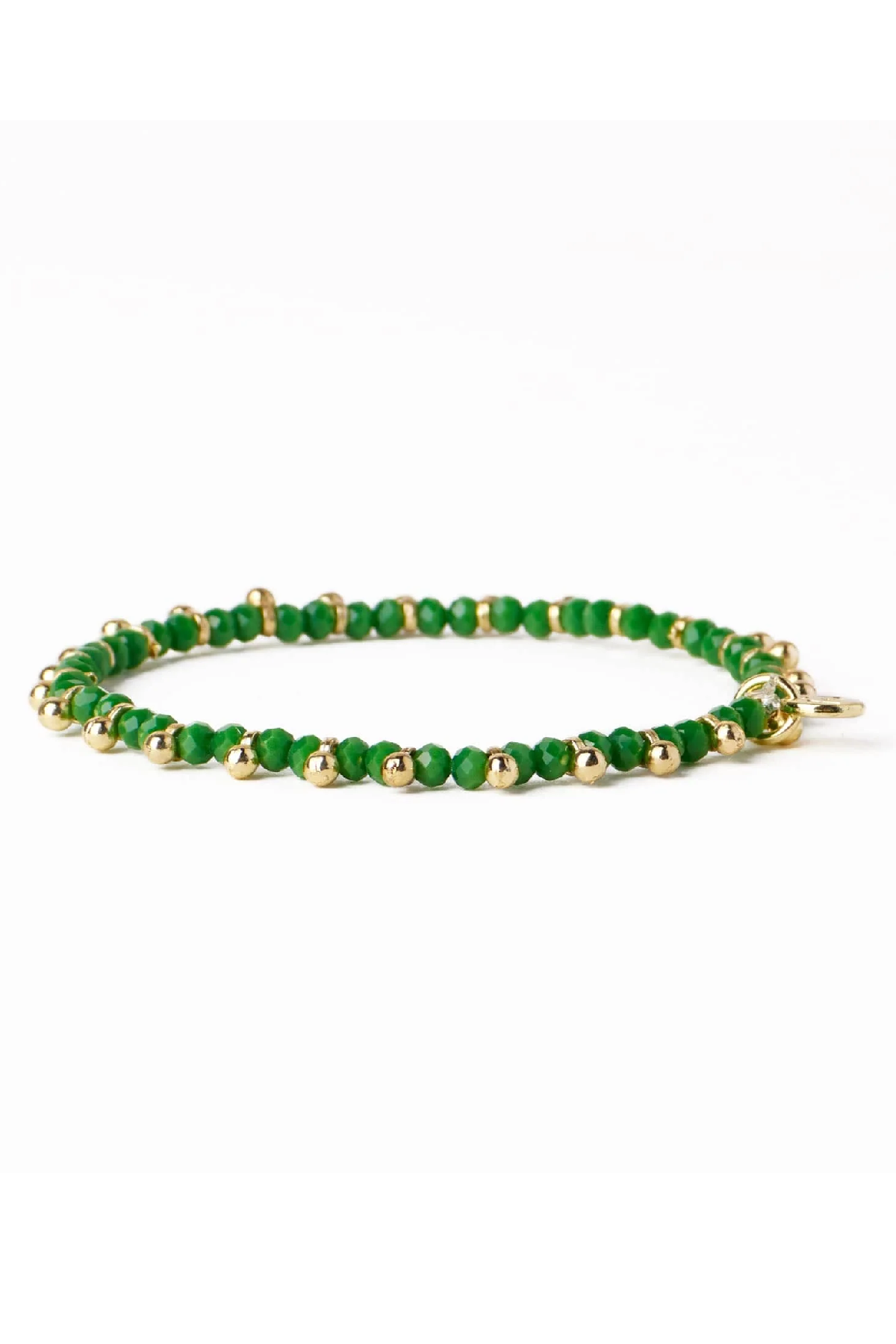 Kami Crystal With Brass Charm Stretch Bracelet Kelly Green + Gold