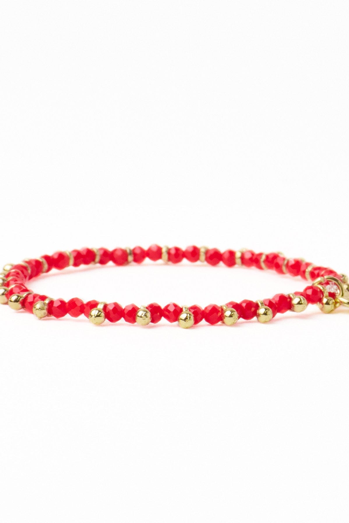Kami Crystal With Brass Charm Stretch Bracelet Tomato + Gold