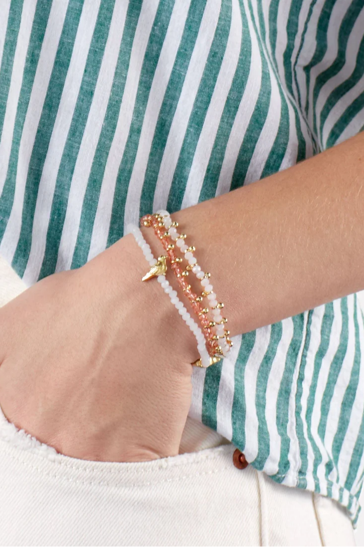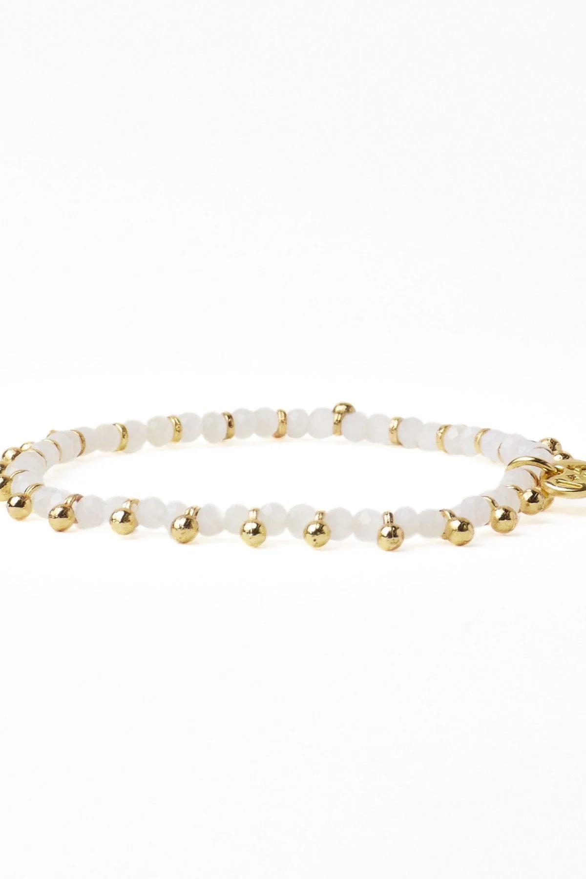 Kami Crystal With Brass Charm Stretch Bracelet White + Gold
