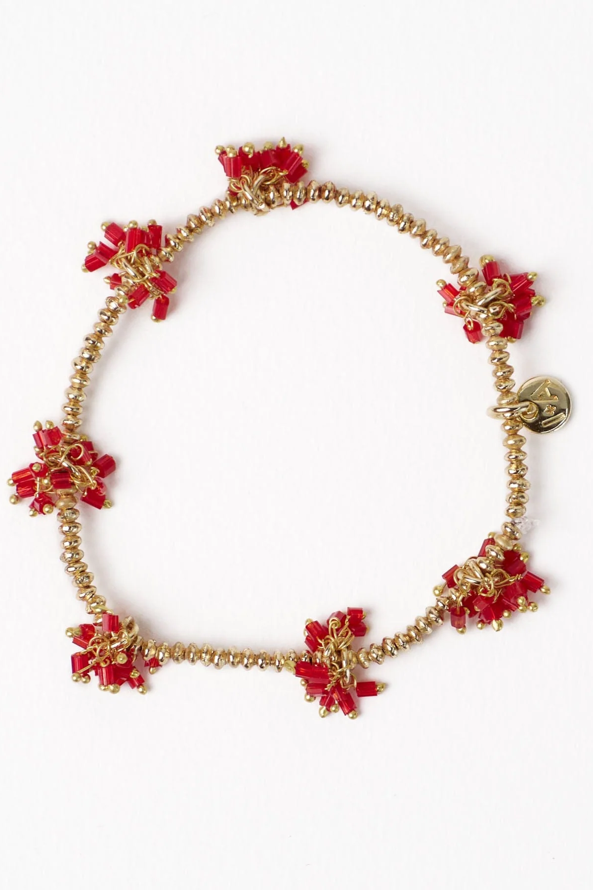 Kate Glass Cluster Beads Stretch Bracelet Red
