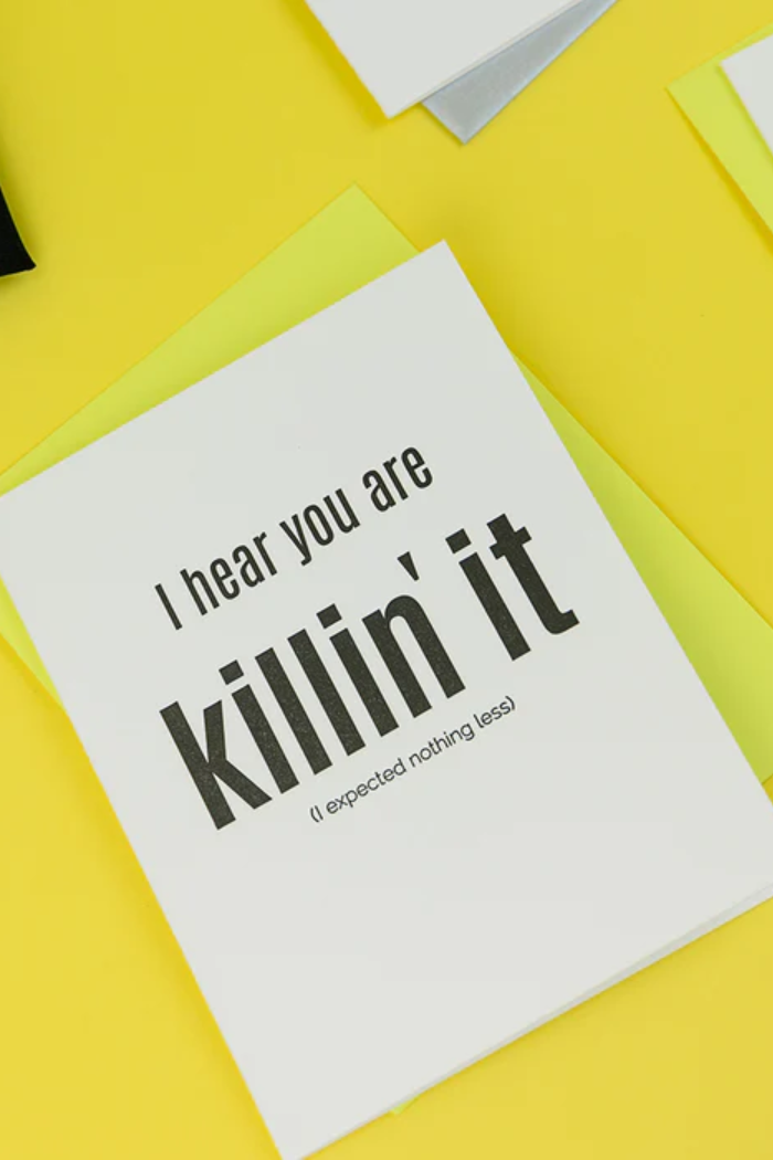 Our "Killin' It" card is letterpress printed on a vintage printing press in sunny California.