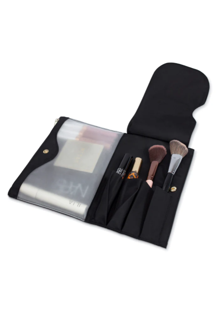 Fold. Snap. Go. The Pocket Organizer protects makeup brushes and snaps right into our Signature and Vacationer Makeup Bags for easy, on-the-go organization. The Organizer doesn’t just work for brushes — is not just a makeup brush organizer. It also works great for eyeliners, lipsticks, concealer, mascara, and even moisturizer or your toothbrush. Includes a large pocket for zipping up items like hairbands, eyeshadows, and more. Fully Machine Washable and also anti-microbial, anti-mold, stain resistant and water repellent.