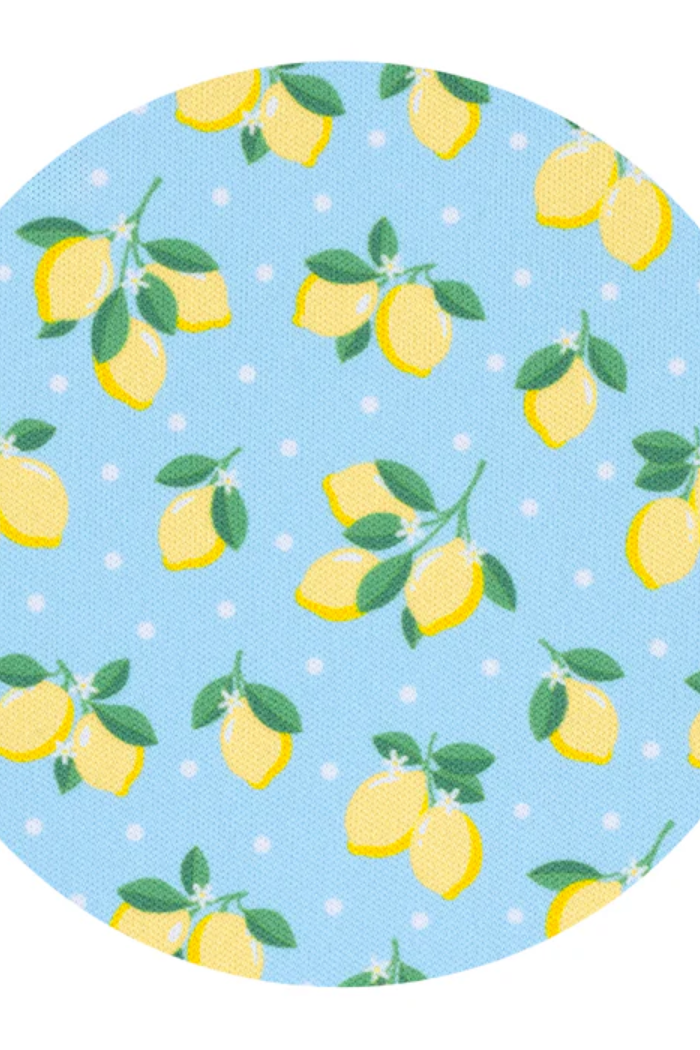 Cool drinks, dry hands! 🧊☕Squeeze the day with these freshly picked lemons and charming polka dots on a sky-blue background.