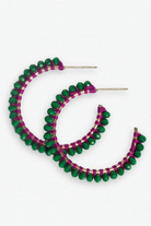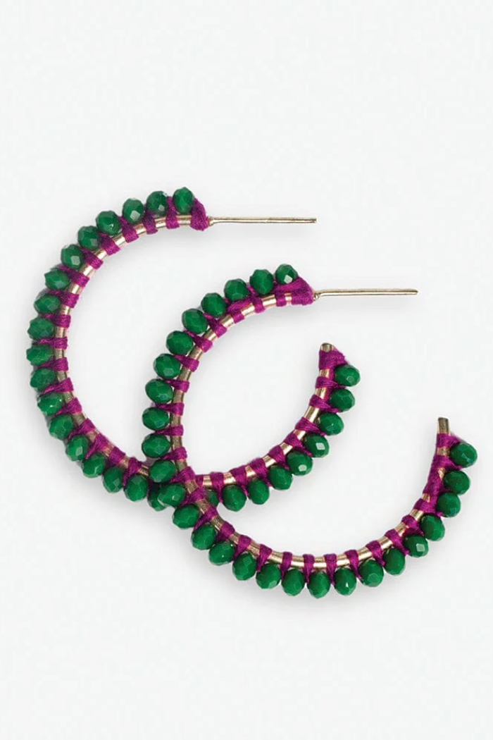 -Design: Crystal-threaded beads wrapped around a brass hoop, featuring a fun contrasting thread detail that adds a pop of unexpected color.