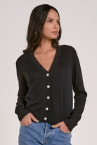 The Lindy Cardigan is a timeless layering essential with a modern edge. Designed with a deep V-neckline and statement buttons down the front, this cardigan strikes the perfect balance between casual ease and elevated style. Subtle raw-edge detailing along the cuffs and neckline adds a touch of texture, while the soft knit fabric makes it comfortable for all-day wear. Pair it with denim for an effortless everyday look or layer it over a dress for chic versatility.