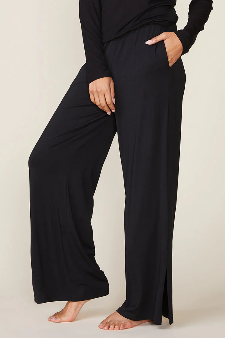 Effortless style meets ultimate comfort with these knit wide-leg pants, crafted in our signature Legendary modal jersey. Thoughtfully designed with functional pockets, side slits at the hem, and a flattering elastic waistband, these pants are the epitome of polished versatility. Lightweight and packable, they’re the ideal companion for lounging at home or jet-setting in style.