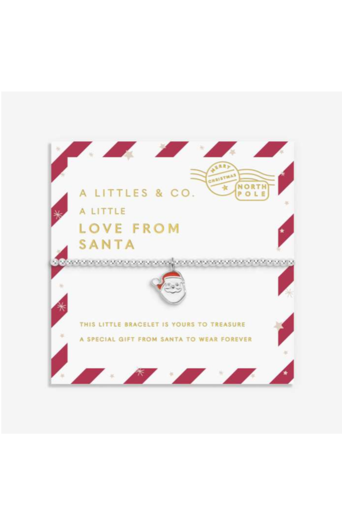 This Little Bracelet Is Yours To Treasure, A Special Gift From Santa To Wear Forever. Bring the magic of Christmas to life with our Kids' Love From Santa Collection! With its shining silver-plated beads, special Santa charm, candy cane stripe presentation card, and gold foil postage stamp, the Kids' Love From Santa 'Love From Santa' Bracelet In Silver Plating has been lovingly sent from the North Pole by Santa, specially for your little one.