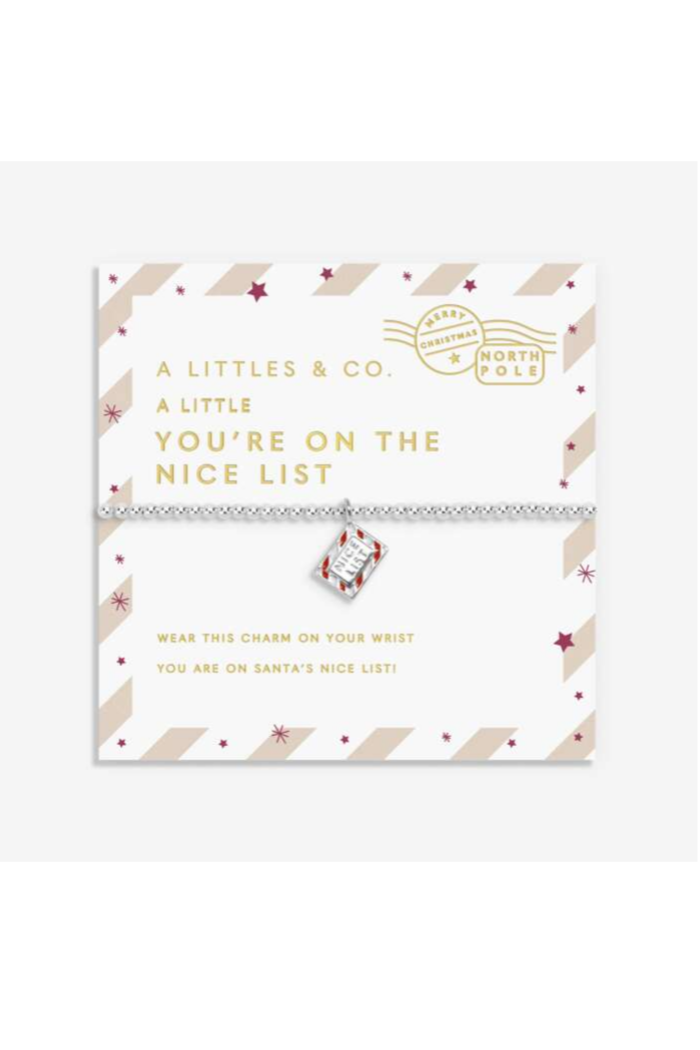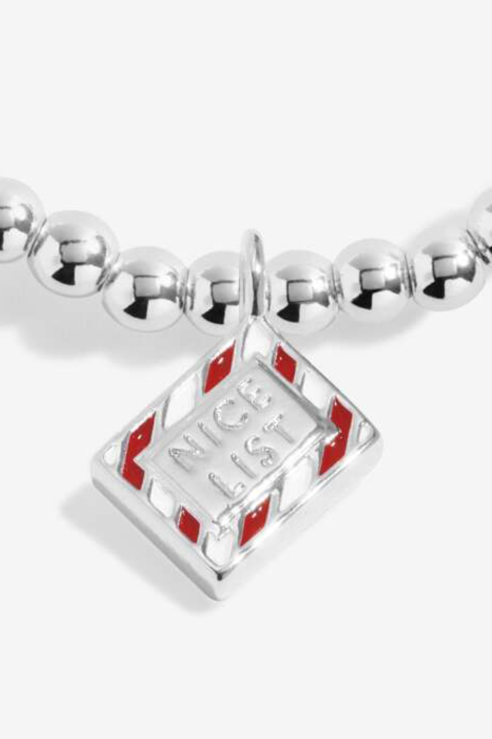 Wear This Charm On Your Wrist, You Are On Santa's Nice List! Bring the magic of Christmas to life with our Kids' Love From Santa Collection! With its shining silver-plated beads, special charm, candy cane stripe presentation card, and gold foil postage stamp, the Kids' Love From Santa 'You're On The Nice List' Bracelet In Silver Plating has been lovingly sent from the North Pole by Santa, specially for your little one.