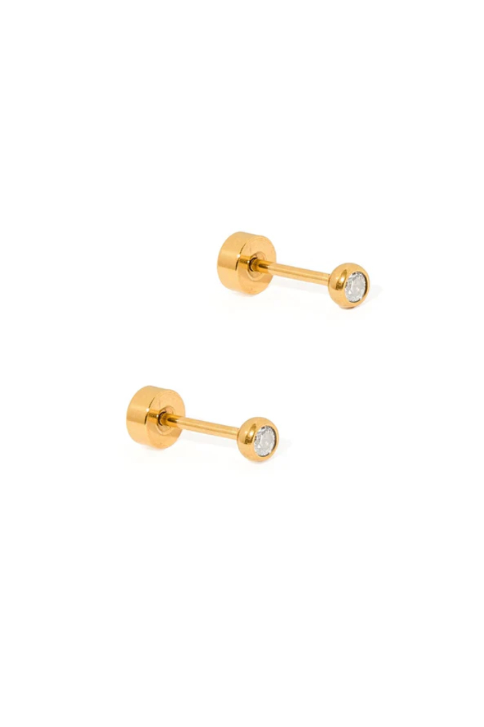 Add a subtle sparkle to your look with the Cooper Clear Stud Earrings. These 2mm clear CZ studs offer the perfect amount of shine in a tiny, minimalist design. Made from 100% surgical-grade stainless steel, these earrings are lightweight, durable, and hypoallergenic, making them ideal for sensitive ears. The secure screwback design ensures a snug and comfortable fit, perfect for both adults and teens.