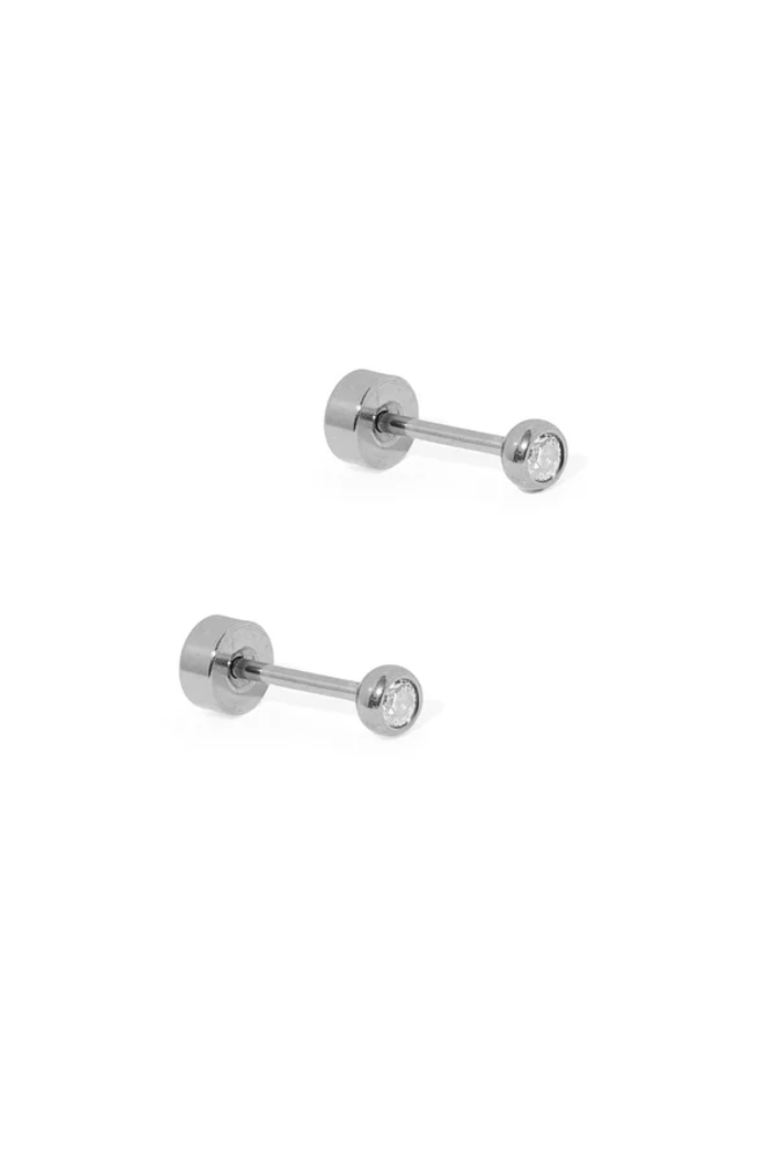 Add a subtle sparkle to your look with the Cooper Clear Stud Earrings. These 2mm clear CZ studs offer the perfect amount of shine in a tiny, minimalist design. Made from 100% surgical-grade stainless steel with a silver-plated finish, these earrings are lightweight, durable, and hypoallergenic, making them ideal for sensitive ears. The secure screwback design ensures a snug and comfortable fit, perfect for everyday wear