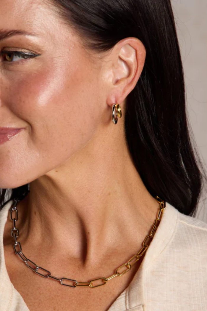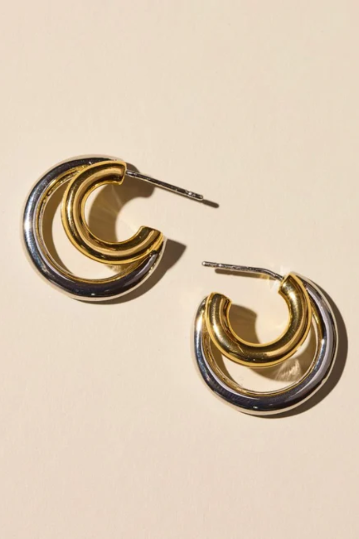 We're seeing double! Make a single piercing look like a double piercing with our Mixed Metal Double Hoop earrings! Perfect for all day, everyday wear - simply put them in like a stud. (No actual twisting required!) This pair will amp up any ear look by giving the illusion of a double-pierced stack with minimal effort.