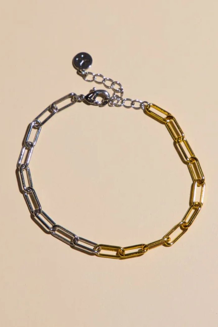 Mixed Metal Paper Clip Chain Bracelet