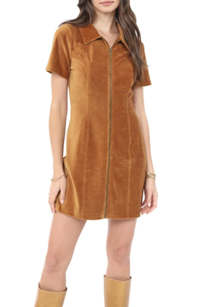 The Morrison Zip-Front Mini Dress strikes the perfect balance between modern edge and classic charm. Designed with a structured fit, it features a collared neckline, short sleeves, and a sleek zip-front closure that adds just the right amount of attitude. The tailored seams sculpt a flattering silhouette, while the mini length keeps things fresh and flirty. Effortlessly versatile, it pairs just as well with ankle boots for daytime adventures as it does with heels for a polished night-out look.