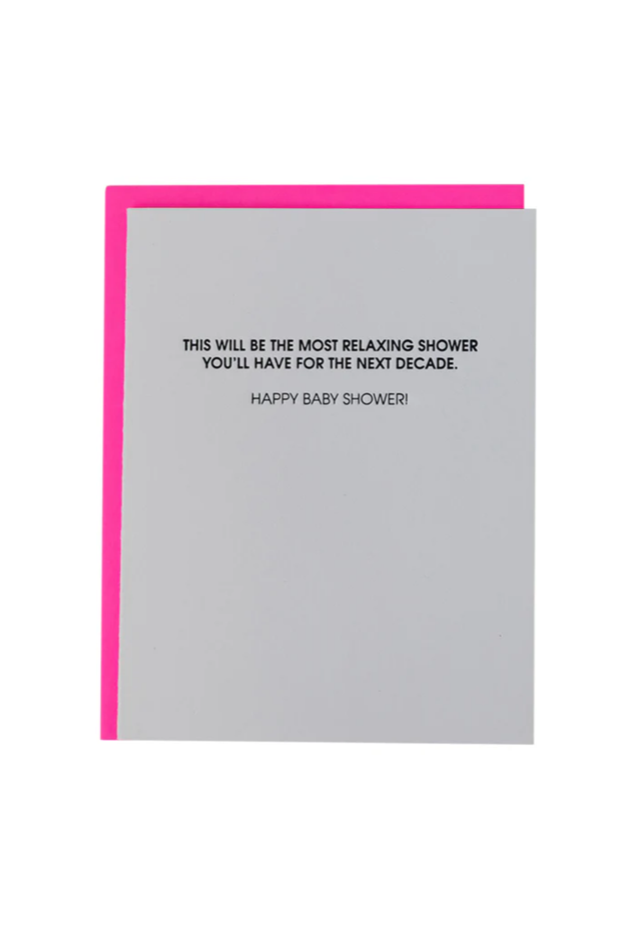 Our "Most Relaxing Shower You'll Have For The Next Decade" card is letterpress printed on a vintage printing press in sunny California.