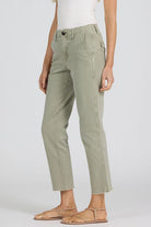 The Portia Pant in creamy beige offers a modern twist with its signature cropped leg trousers and clean hem that define the ultimate in comfortable chic style.