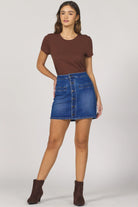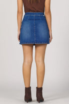 The perfect blend of classic style and modern elegance with Quinn high rise clean hem denim skirt.