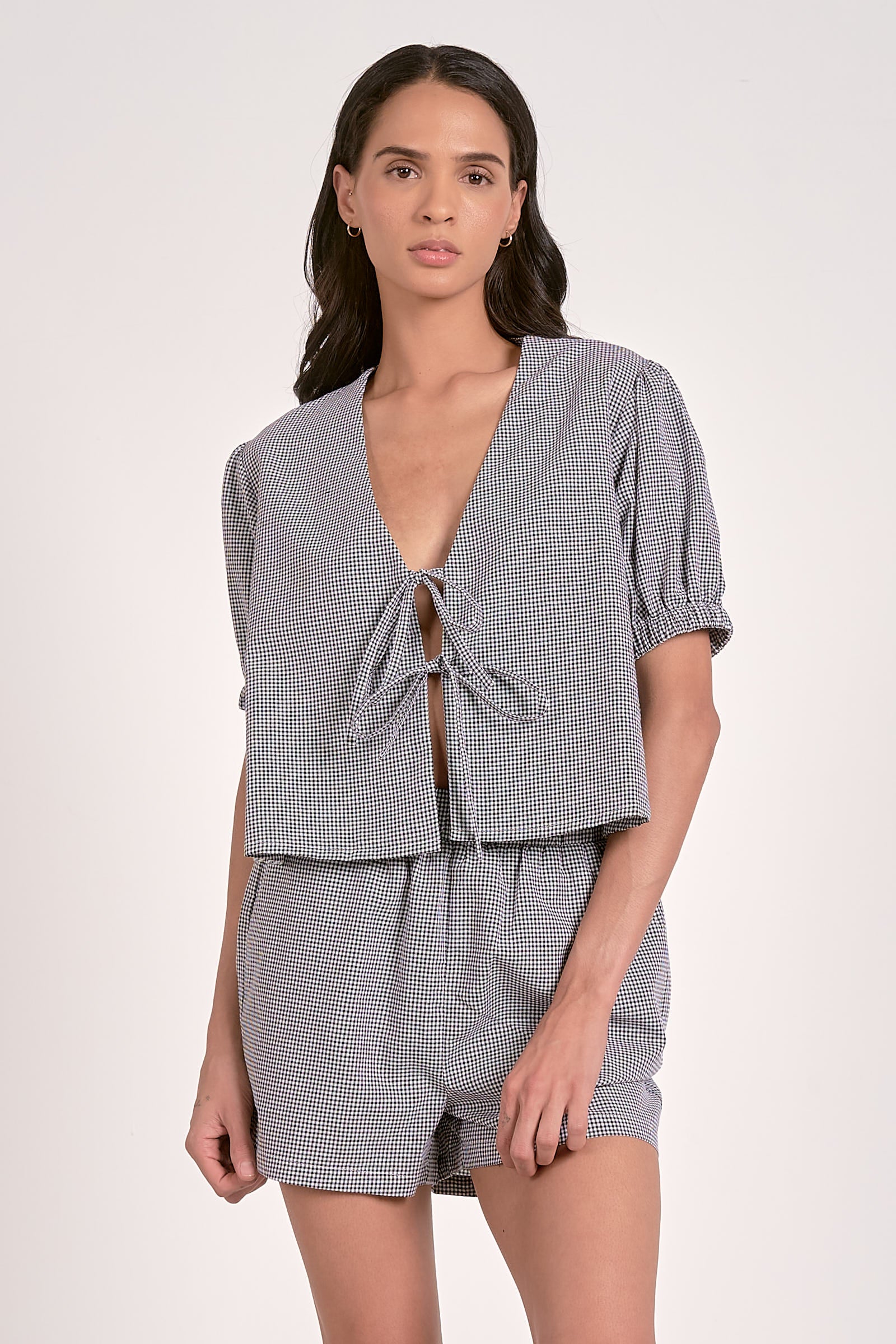 Effortlessly chic and breezy, the Block Island Seersucker Tie Front Top is your new go-to for warm weather ease. Made from a lightweight cotton-blend seersucker, this top features a playful double-tie front closure and subtle puff sleeves with elastic cuffs for a feminine touch. The slightly cropped, boxy silhouette pairs perfectly with high-rise bottoms, offering a relaxed yet polished look that transitions seamlessly from beach day to brunch date.