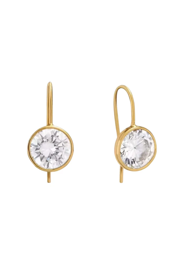 Delicate gold-tone stud earrings with faceted clear stones set in a smooth bezel, the Shay Studs Gold offer a refined sparkle for everyday wear. These Hjan Jewels earrings combine a minimalist silhouette with a luminous, round-cut crystal for a timeless, elegant look. Lightweight and versatile, they easily transition from polished daytime outfits to dressy evening styles.