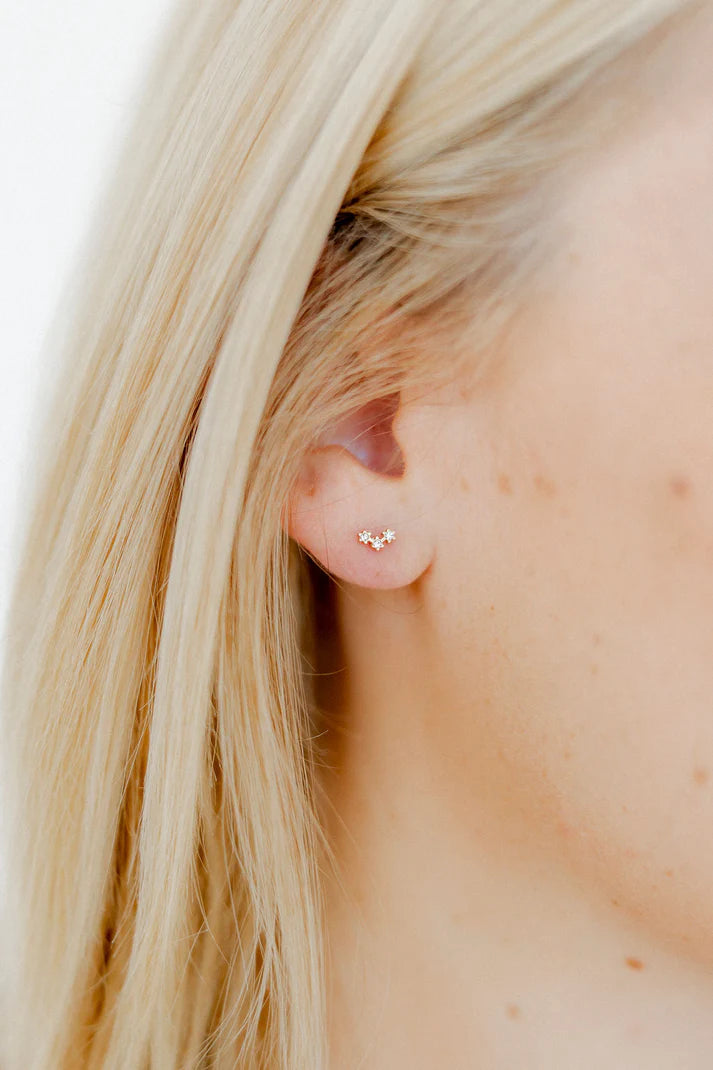 The Sienna Screwback Stud Earrings are inspired by the beauty of the night sky, designed to resemble a perfect star constellation on your ear. Featuring a 6mm stud with three CZ stones arranged in a gold star arch shape, these earrings add a celestial touch to your style. Made from 100% surgical-grade stainless steel, they are nickel- and copper-free, making them safe for sensitive ears. With a secure screwback design, they offer a snug and comfortable fit for all-day wear.