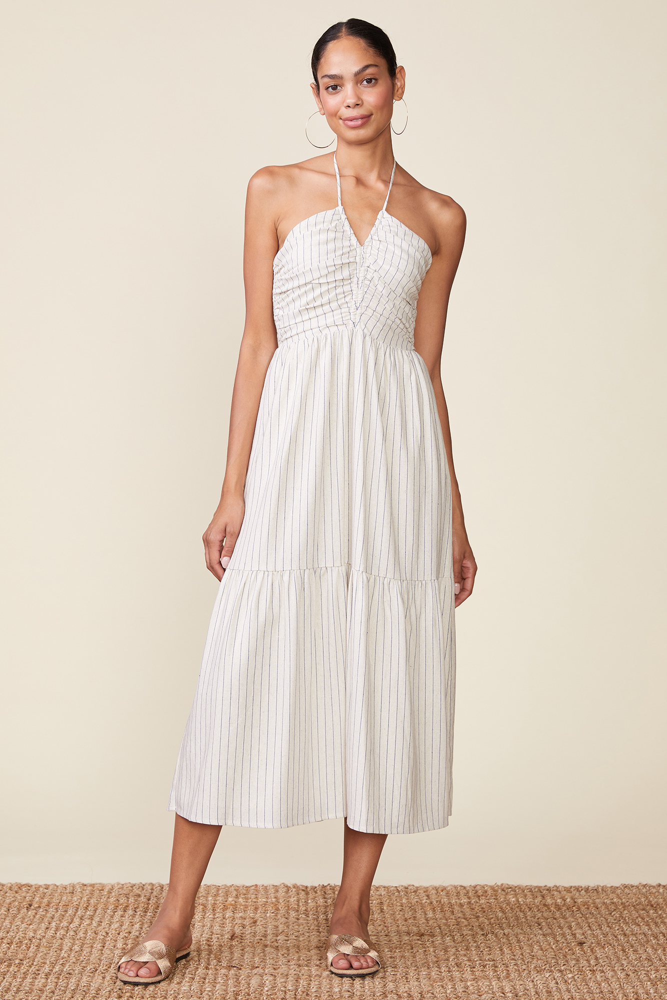 Striped Linen Cinch Halter Maxi Dress