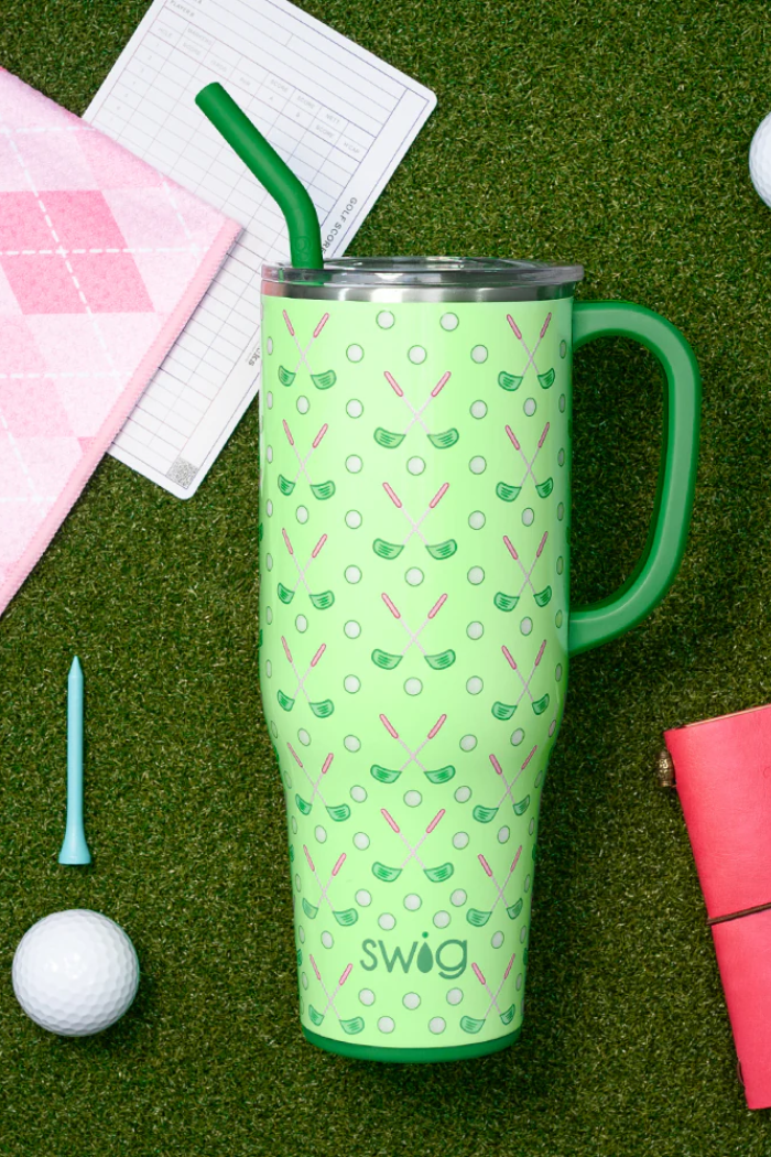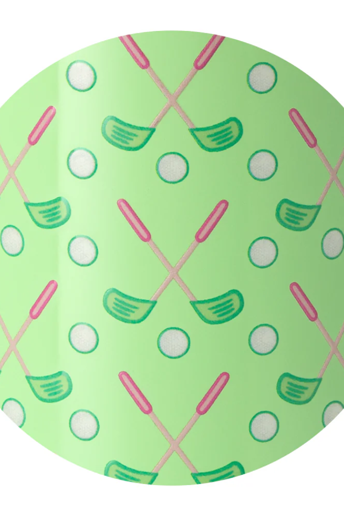 Mega sips, mega chill! π§ Tee it up in this fun, minty green and pink scene of golf clubs and golf balls.