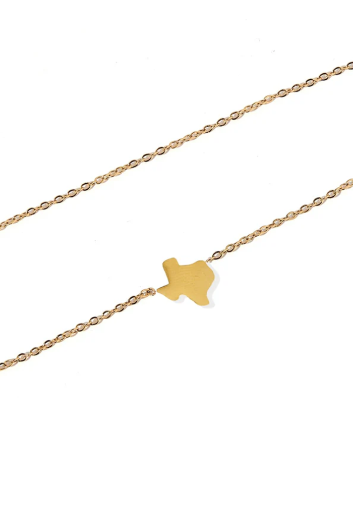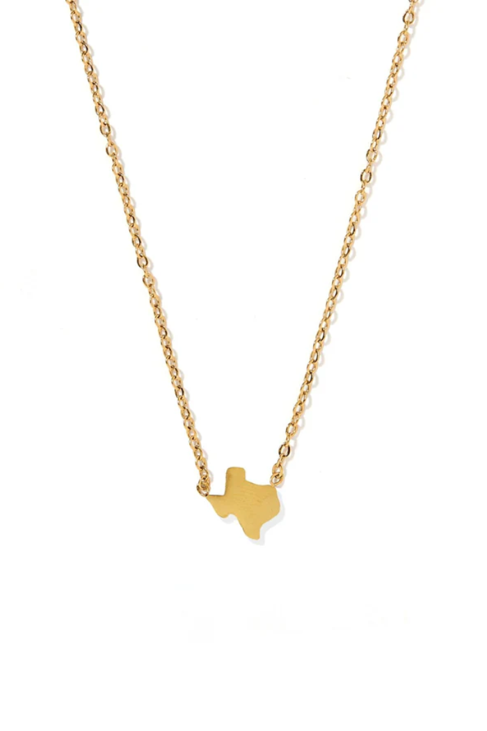 Show your Lone Star pride with the Texas Necklace. This dainty gold design features a sleek Texas-shaped charm measuring 10mm x 10mm, crafted with care for everyday wear. Made with surgical-grade stainless steel, this necklace is lightweight, durable, and hypoallergenic—safe for sensitive skin. The adjustable chain with a 2-inch extender allows you to wear it at either 16" or 18", making it a versatile piece that layers beautifully or shines on its own.