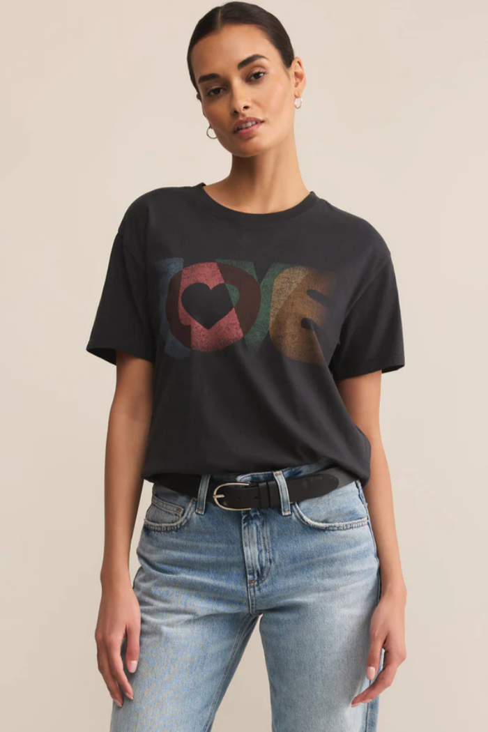 Crafted from soft-hand cotton jersey with a vintage wash, this relaxed tee has that easy, lived-in feel you’ll reach for daily. The abstract “love” screen print at the center front adds a fun pop to your casual look.