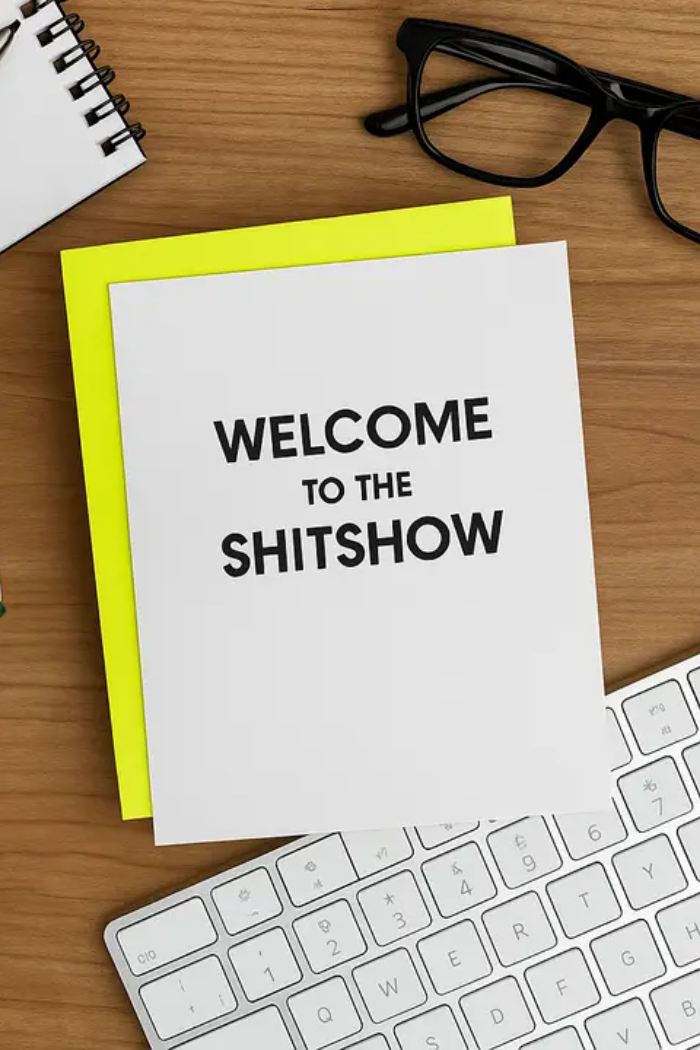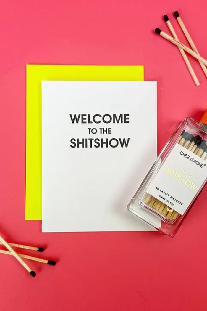 Our “Welcome to the Shitshow” card is letterpress printed on a vintage printing press and is the perfect way to laugh through life’s chaos. Whether it’s a new job, parenting, friendship drama, or just the everyday circus, this funny letterpress card says what everyone’s thinking with bold, cheeky style. A great pick for birthdays, encouragement, or simply letting someone know you’re in the madness together.