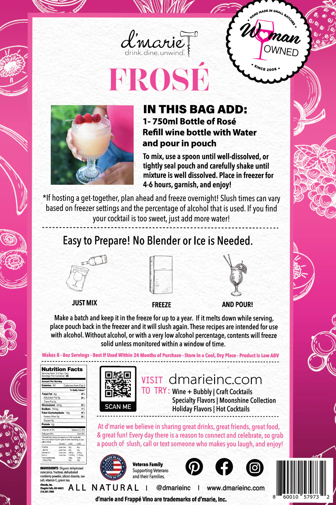 Our Frosé Slush Mix is made with real Cranberries!