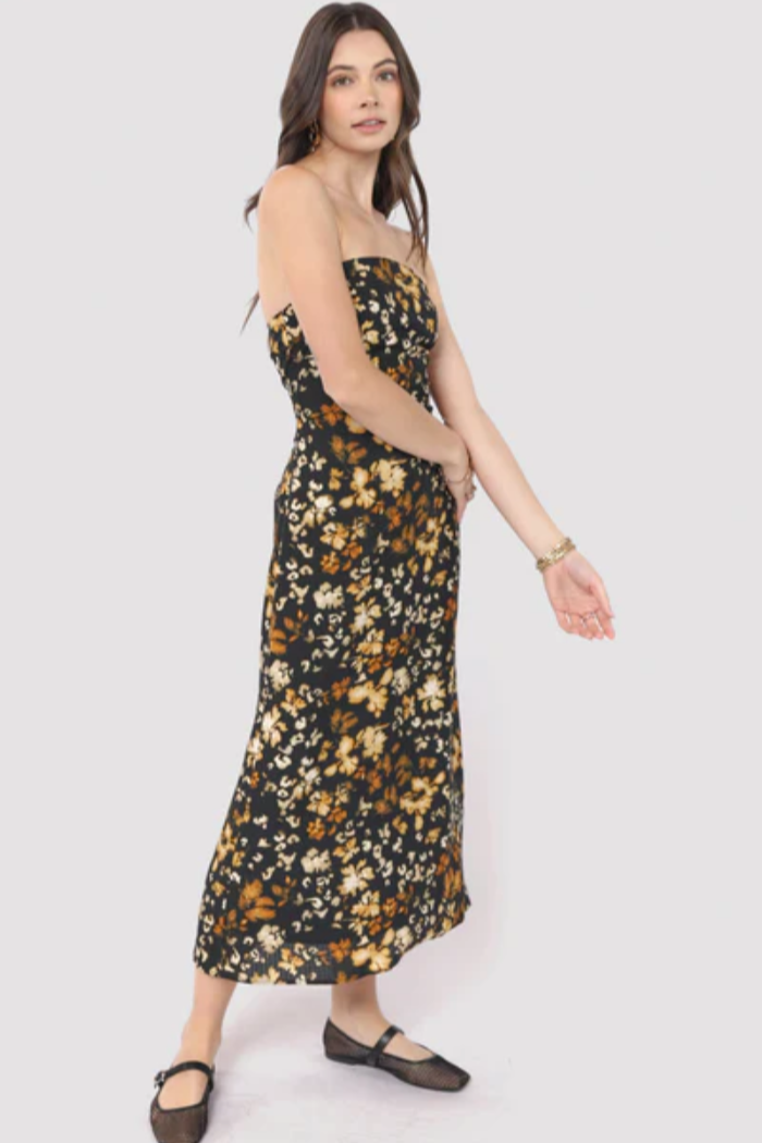 Turn heads in the With Ease Tube Midi Dress from Sadie & Sage. Designed with a chic printed pattern and a sleek, curve-hugging silhouette, this strapless midi dress brings effortless sophistication to any occasion. The back zipper allows for a seamless fit, while the lightweight fabric moves with you—perfect for a look that’s both playful and polished