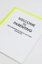 Our “Parenting: You’ll Never Be On Time, Ever Again” card is letterpress printed on a vintage printing press. The perfect mix of honesty and humor, this card is a great choice for baby showers, new moms and dads, or any parent who knows that life with kids means running perpetually late.