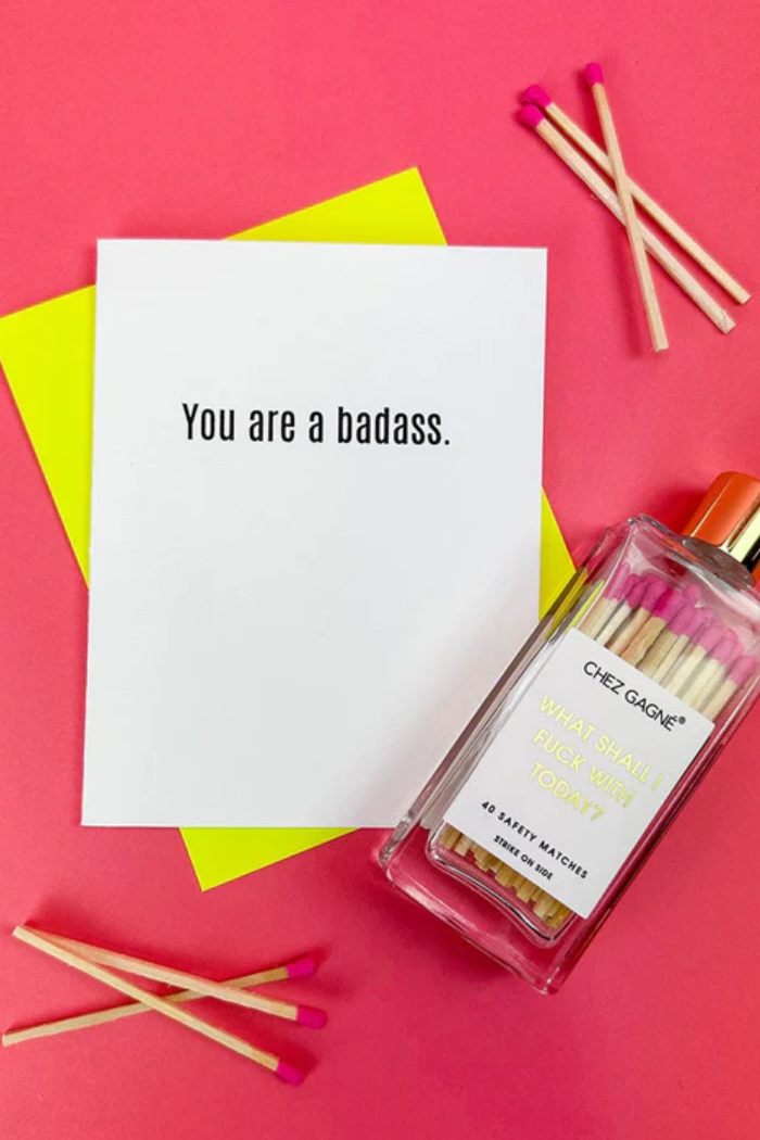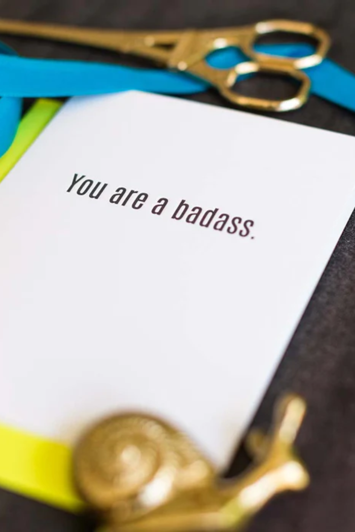 Our "You Are A Badass" card is letterpress printed on a vintage printing press in sunny California.