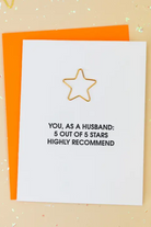 Our “You as a Husband 5 out of 5 Stars. Highly Recommend” card is the ultimate review your partner actually wants. Perfect for anniversaries, Valentine’s Day, or just because you love reminding your husband he’s the best, this cheeky card mixes humor with heartfelt appreciation.