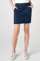 Step up your warm-weather wardrobe with the Callie Skirt with Built-In Bike Shorts in Deep Midnight from Liverpool Los Angeles. This modern skort blends the polished look of a skirt with the confidence and comfort of built-in spandex shorts, creating a piece that moves with you all day. Utility-inspired details and a clean silhouette give it a contemporary edge, making it as stylish as it is functional.