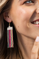 ADALINE ALTERNATING TWO-TONE STRANDS BEADED FRINGE EARRING MULTICOLOR