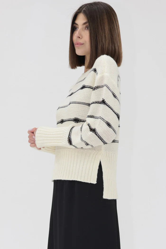 Embrace the cooler seasons with Alessia crew neck sweater, designed to bring together style and cozy. Featuring long sleeves and stripes, the blend in classic fit is the perfect layering piece to pair it effortlessly with jeans or skirts for everyday utility.