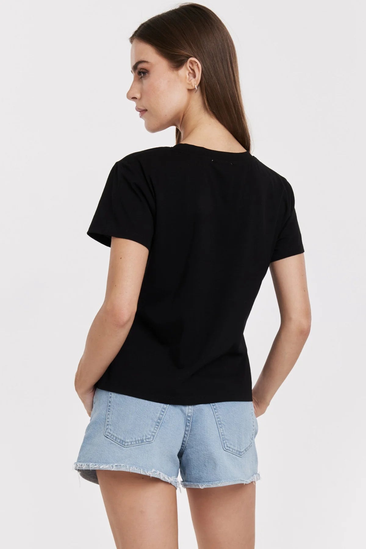 The effortless Amaya v-neck tee is an essential piece is for both comfort and elegance in any wardrobe. Its short-sleeve with a flattering v-neck, cut for versatility for a relaxed fit, making it an essential piece in your collection of cozy wear. Versatile t-shirt that pairs perfectly with jeans, skirts, or under a blazer for a sophisticated look.