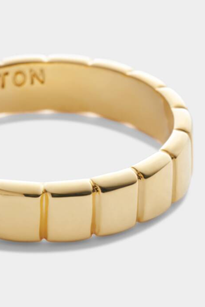 Certified waterproof, our Amulet Waterproof Gold Skinny Ring (Size Large/P) has been designed in durable 18K Gold PVD Coating, meaning it is waterproof, sweat-proof and life-proof! Featuring a fun, golden bar design detail, this ring is available in three different sizes to cater to everyone!