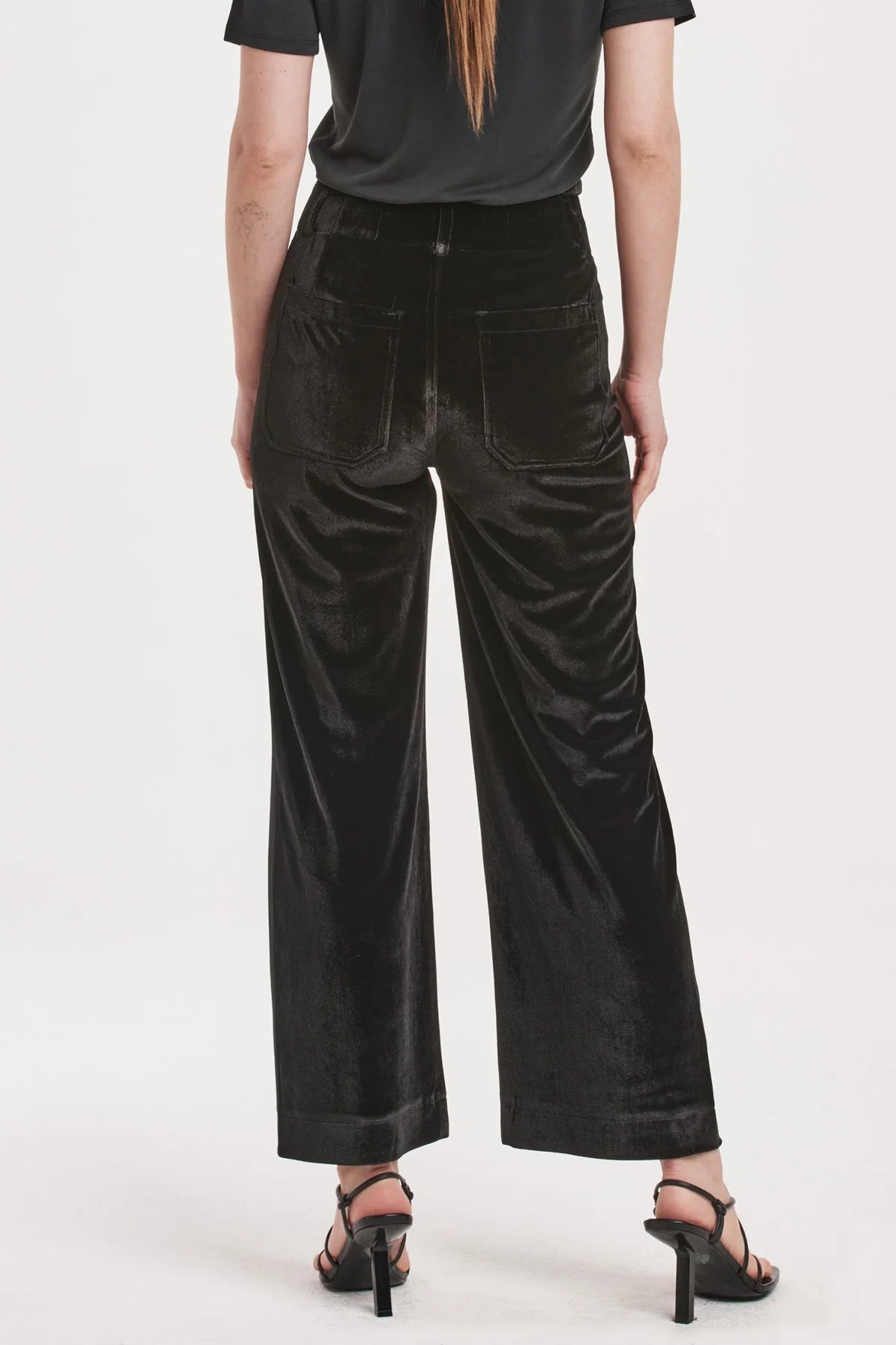 Elevate your wardrobe with the luxurious elegance of the Anahi patch pocket velvet pants. These versatile high-rise pants are designed to seamlessly transition from day to night, offering a sophisticated silhouette that flatters effortlessly. The distinctive patch pocket design adds a modern edge, blending style and functionality for the fashion-forward individual.