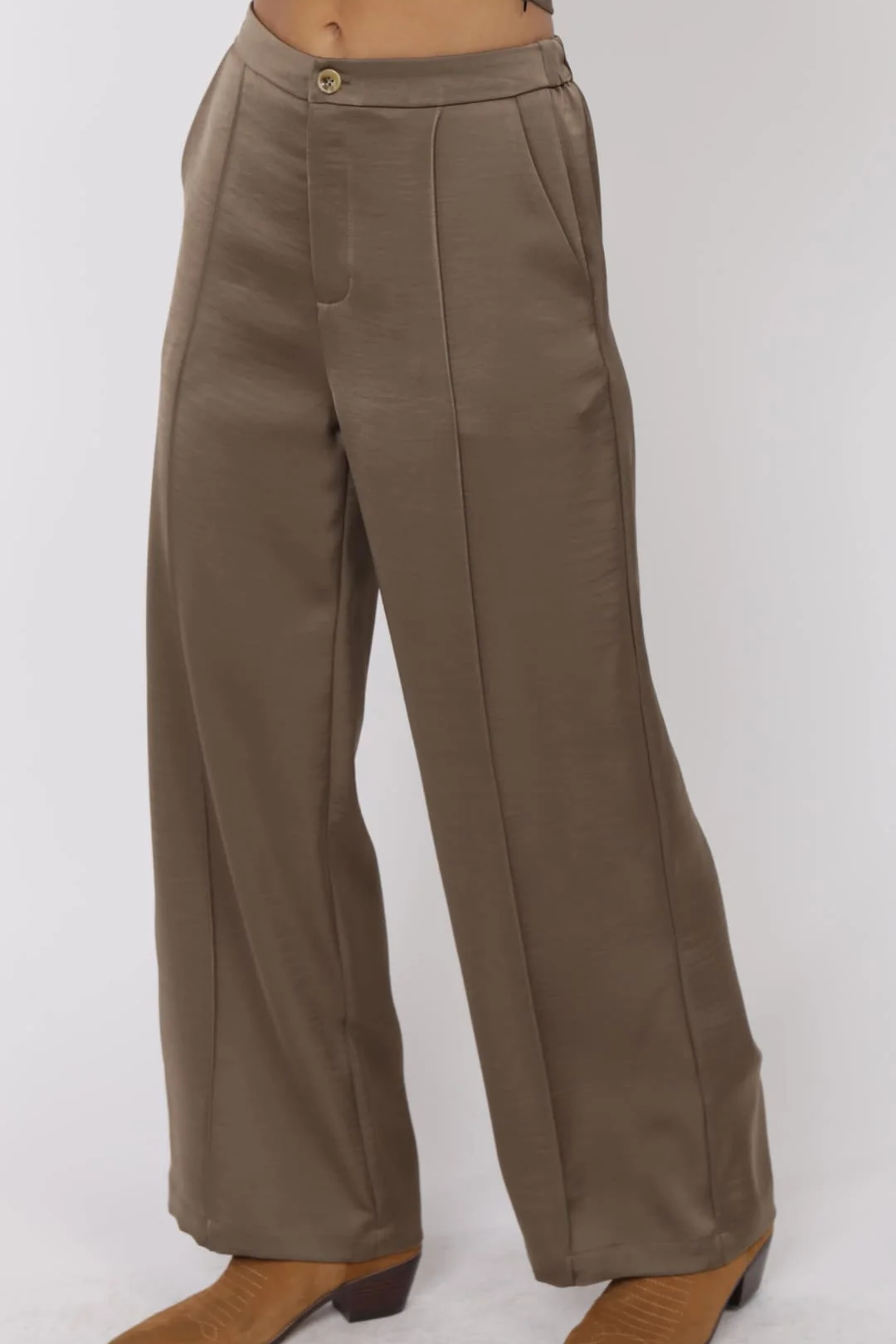 Step into effortless sophistication with the Arizona Sky Pant. Crafted from smooth, silky taupe satin, these trousers bring a touch of luxury to any occasion. Designed for both comfort and style, they feature a fluid drape that flatters your silhouette, perfect for pairing with a tailored blouse for the office or a sleek cami for an evening out. Versatile, elegant, and endlessly chic, these pants are your new go-to for elevated everyday wear.