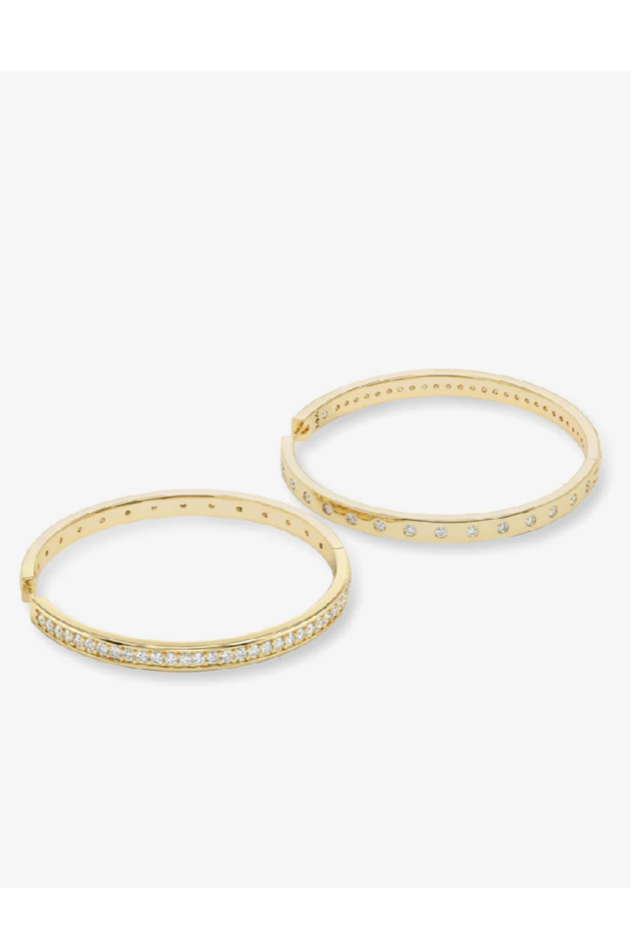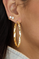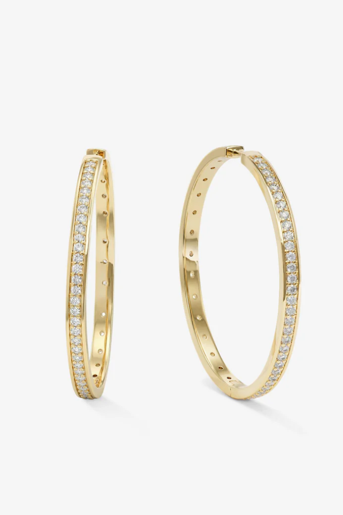 Two sides of Ashley. The 2” Reversible Hoops feature bezel-set round simulated diamonds on one side and a smooth, polished finish on the other, made to hold attention a little longer.