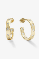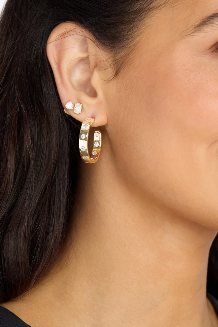A refined hoop in the perfect everyday size, defined by smooth, polished curves and bezel-set round simulated diamonds that strike the perfect balance of polish and ease.