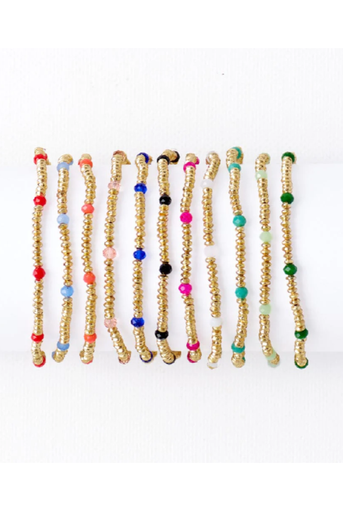 Ashley Small Brass + Crystal Stretch Bracelet Mint + Gold
