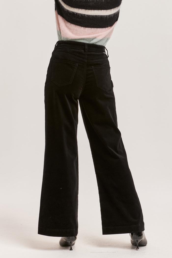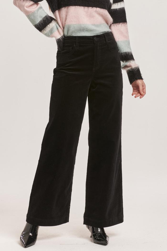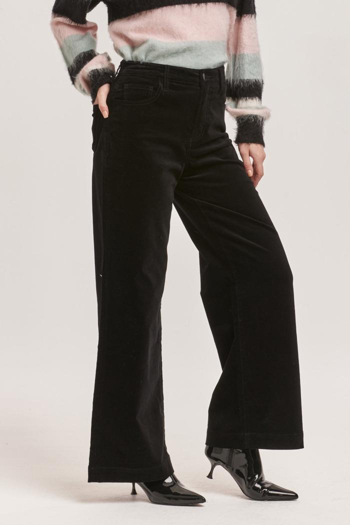Audrey High Rise Full Inseam Wide Leg Pants Black Velveteen
