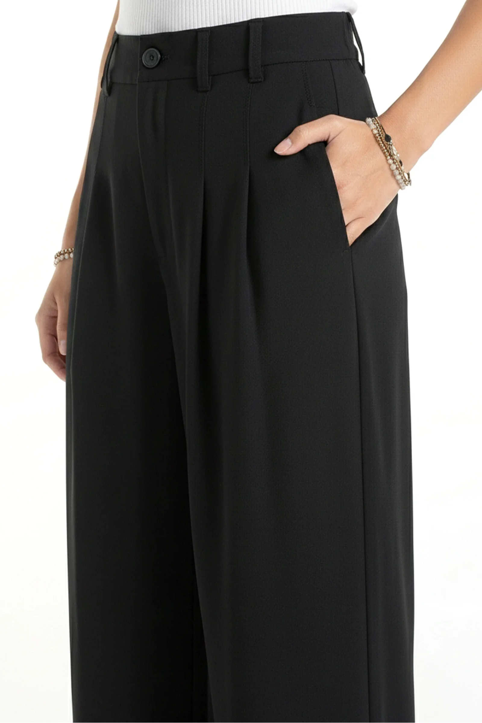 Azure High-Rise Pleated Trouser – Black | Liverpool Style
