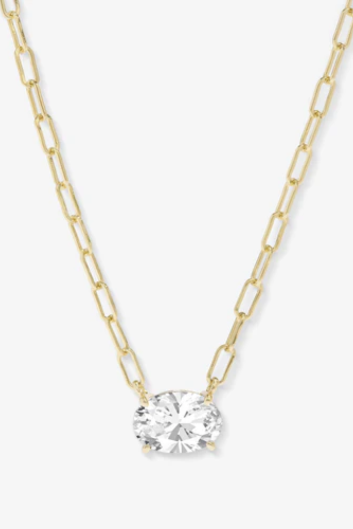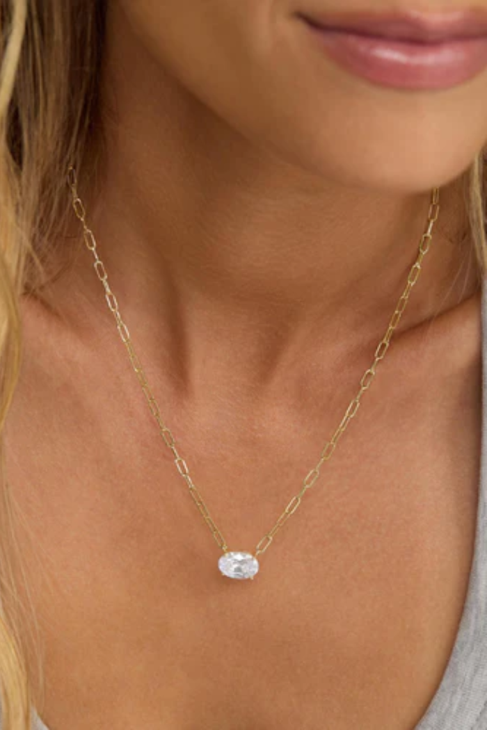 The icon, reimagined. The Baby Hello Gorgeous Necklace is a scaled-down stunner with all the shine of the original. Featuring our iconic pendant in a smaller size and paired with the delicate Micro Samantha Chain, it's the perfect mix of sweet and chic. Finished with a bezel-set simulated diamond at the clasp for an elevated touch.