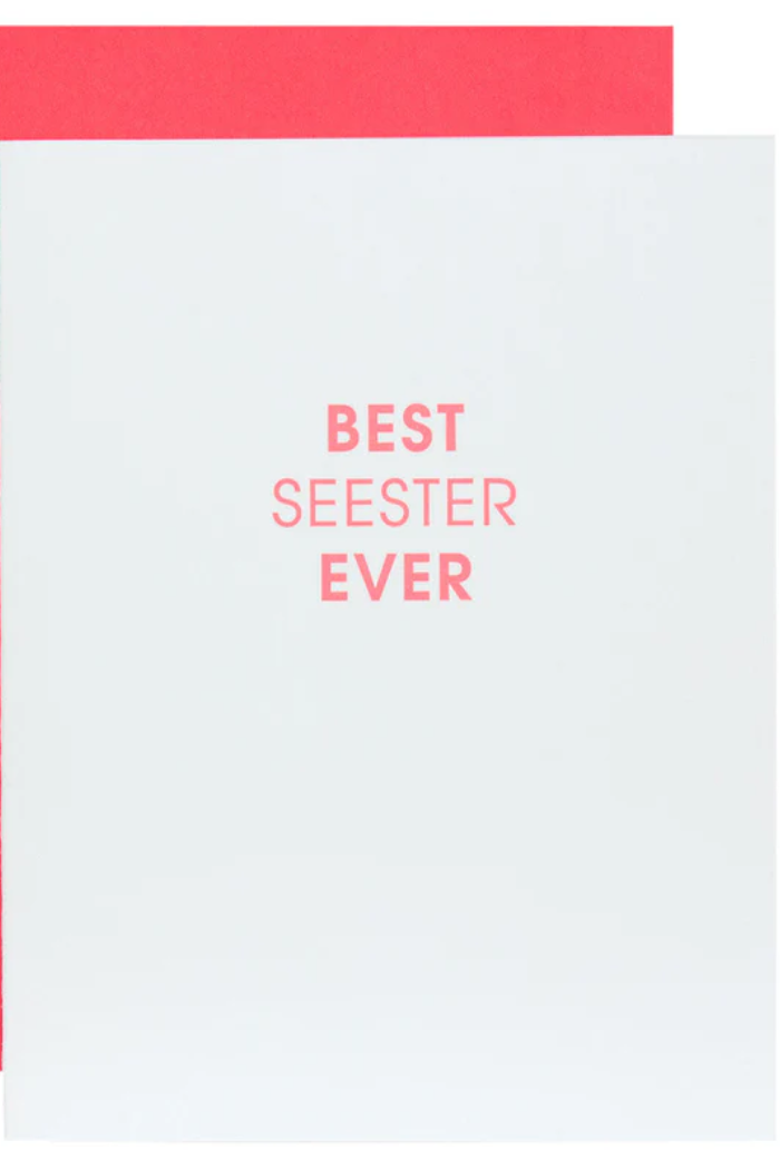 Our "Best Seester Ever" card is letterpress printed on a vintage printing press in sunny California.
