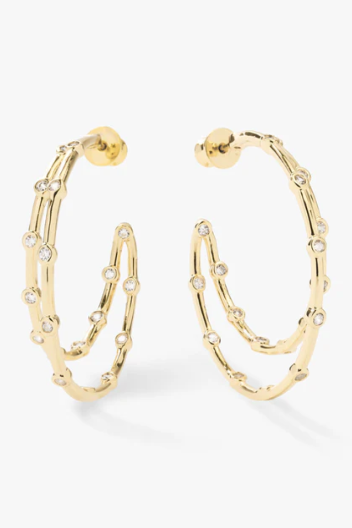 A Melinda Maria classic reimagined. The Big Ass Doubled hoops feature 2 circle hoops with simulated diamond accents for a BIG ass impact.